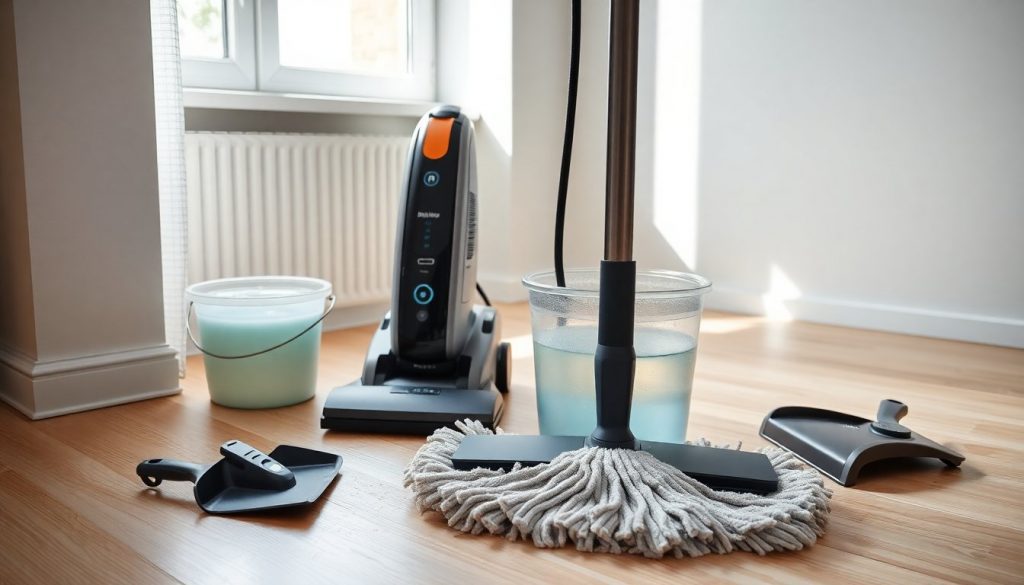 Effizienter putzen: Erfahren Sie, warum Staubsaugen vor dem Wischen Zeit spart und bessere Ergebnisse bringt.